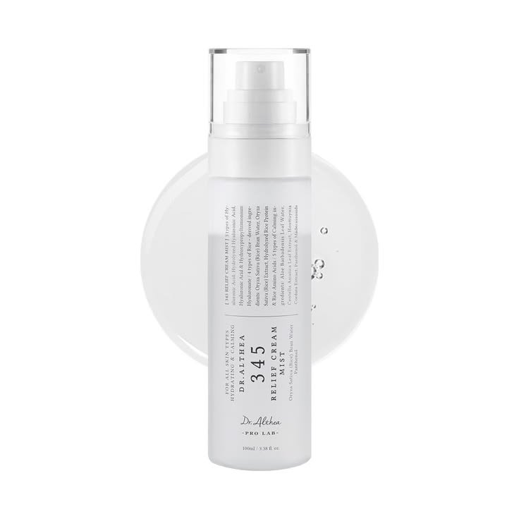 Dr.Althea 345 Relief Cream Mist is a unique Korean skincare mist that combines a rich cream layer with a refreshing water‑essence layer to deliver instant hydration and soothing comfort. Formulated with hyaluronic acid, rice bran water, panthenol, and centella extracts, this ultra‑fine mist strengthens the skin barrier, calms irritation, and nourishes dehydrated skin throughout the day.
